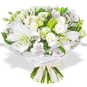 Облачный свет - букет из лилии,эустомы и альстромерии