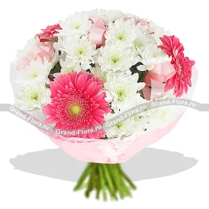 В объятиях любви - букет из хризантем и гербер