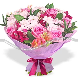 Палитра нежности - букет из роз, альстромерий и хризантем