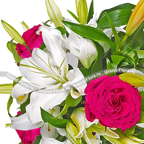 Прекрасная возможность преподнести ранним утром нежный букет из лилий и роз. Сделать день запоминающимся просто так - без повода! Или вручить букет в качестве извинения, котрый будет радовать получателя не меньше 7 дней*.