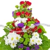 Уменьшенный: хризантема белая кустовая - 2 шт., роза красная кустовая - 2шт., хризантема зеленая кустовая - 3 шт., статица - 2шт., салал, сетка.