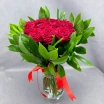25 роз: роза красная (70см) - 25 шт., рускус (или салал/ малина/фисташка) - 13 шт., упаковка, лента.