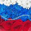 ЛЮКС: роза красная - 11 шт., хризантема синяя - 5 шт., хризантема белая - 6 шт., фетр красно-белый.