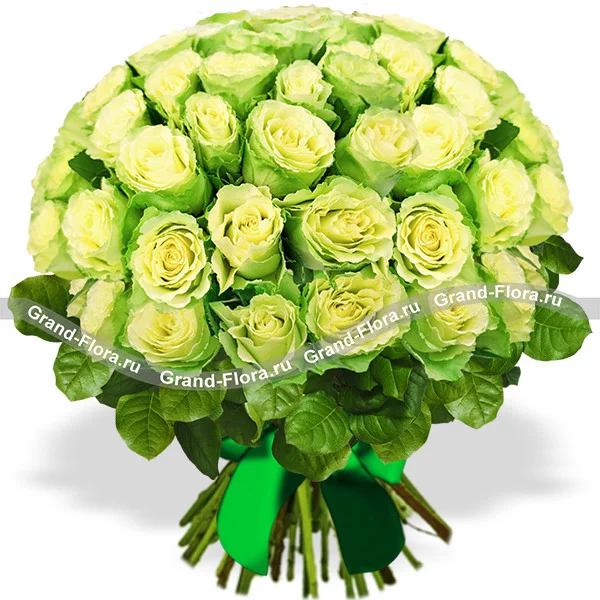 Роза зеленая - 51 шт., лента. Перед заказом обязательно уточните наличие зеленых роз у оператора!
