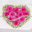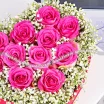 11 роз (на фото): роза розовая - 11 шт., гипсофила, оазис сердце малое. Примерный размер: 25Х25 см.